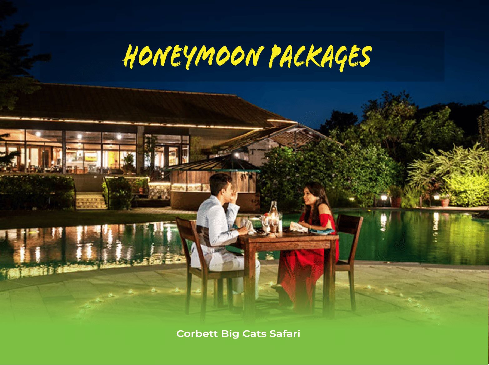 The elegantly designed rooms, adorn with charismatic decoration and sumptuous food is a lovable attraction for honeymoon couples. Additionally, with the series of supreme resorts at Jim Corbett, the thrilling expedition to the jungle with binoculars and camera handy, the ride through the forest is rip roaring and adrenaline gushing.